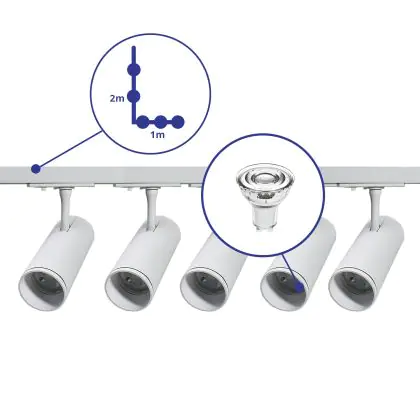 | Nome del fabbricante | Complete L shaped 1-Phase Track Set White incl. 5x Spot fixture + GU10 2700K 3W Dim – 1 x 2 meters i | |