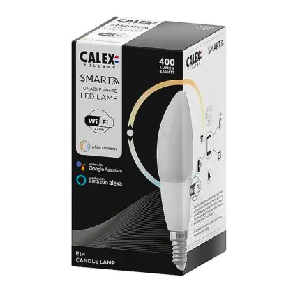 Stai cercando una lampadina smart a LED con attacco E14 di alta qualità? Allora la lampadina LED Calex Smart Candela fa per te! Questa lampadina smart ha attacco a vite E14, che la rende facile da montare, pronta all’uso e compatibile con la maggior parte di lampade e lampadari. Inoltre, la forma a candela, dà a questa lampadina un tocco di originalità. Come se non bastasse, risparmierai notevolmente sui costi energetici, perché questa lampadina a LED da 400lm consuma solo 4,5 Watt.