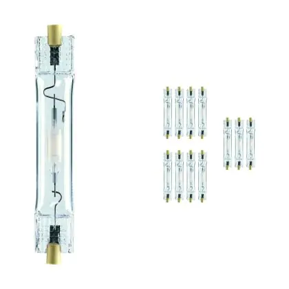 Le lampade a scarica di gas si possono ancora vedere in diversi luoghi, sia in ambienti chiusi che in spazi all'esterno. Un esempio sono i lampioni. Inoltre, le lampade a scarica di gas con un'elevata emissione luminosa (lumen) e una resa cromatica perfetta (90-99Ra) vengono utilizzate in ambienti con soffitti alti, come i capannoni delle fabbriche. Questo prodotto haattacco RX7S e indice CRI di 80-89 - Buona resa cromatica. Si può inoltre scegliere fra apparecchi dimmerabili e non dimmerabili.