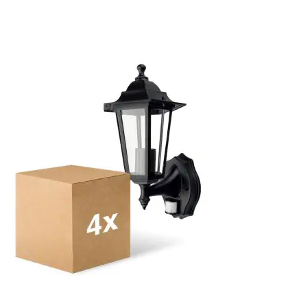 Confezione Multipack 4x D'Lite Luce Da Parete Helora Nero | IP44 - Adatto per 1x E27 - Sensore Di Movimento
