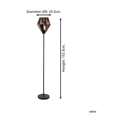 Eglo Lampada da terra Carlton 1 Acciaio Nero Rame | IP20 - Adatto per 1x E27