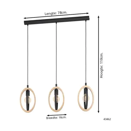Eglo Luce Pendente Basildon Acciaio Legna Nero Marrone | IP20 - Adatto per 3x E27