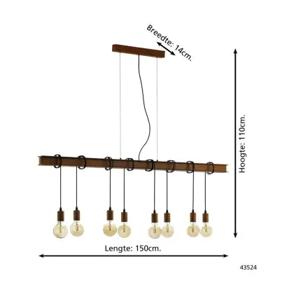 Eglo Luce Pendente Townshend 4 Acciaio Marrone Nero | IP20 - Adatto per 8x E27