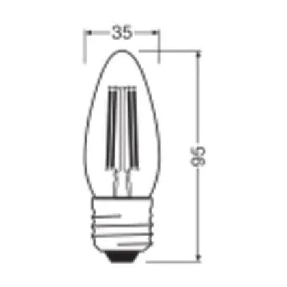 Descrizione Ledvance Classic LED E27 Candela Filamento Chiara 3.4W 470lm - 827 Bianco Molto Caldo | Dimmerabile - Sostitutiva 40W