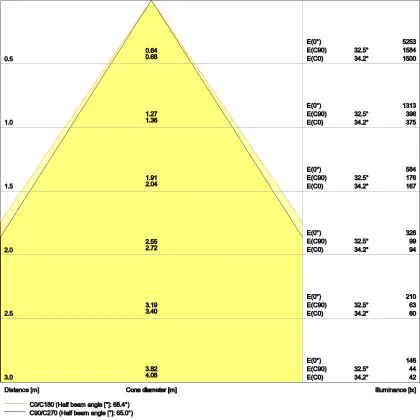 L'apertura del fascio luminoso indica l'angolo del fascio di luce proveniente da una lampada o lampadina. Si misura in gradi (D) e più piccolo è l'angolo, più piccola è l'apertura del fascio di luce.