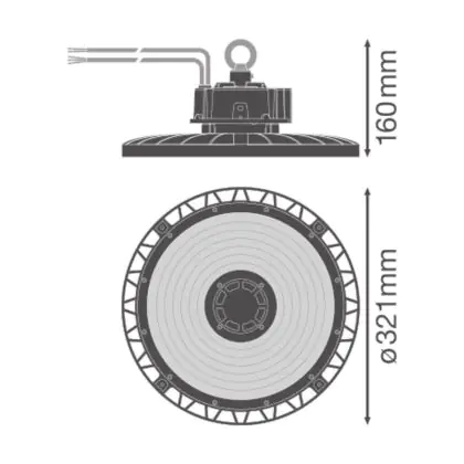 Descrizione Ledvance Highbay LED Gen 5 Aluminium Nero 150W 26250lm 70D - 865 Luce Del Giorno | IP66 - Dali Dimmerabile