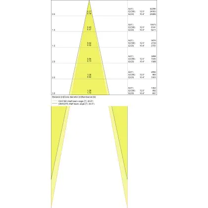 L'apertura del fascio luminoso indica l'angolo del fascio di luce proveniente da una lampada o lampadina. Si misura in gradi (D) e più piccolo è l'angolo, più piccola è l'apertura del fascio di luce.