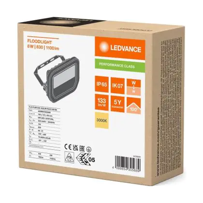 Ledvance Proiettore LED Aluminium Nero 8W 1100lm 100D - 830 Luce Calda - | IP66 - Simmetrico