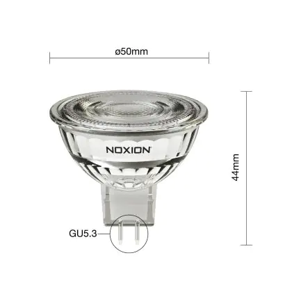 La Noxion Faretti LED GU5.3 MR16 4.4W 345lm 36D - 830 Luce Calda - | Sostitutiva 35W è perfetta per la sostituzione della classica lamapda alogena35W GU5.3 con colore della luce 830 Luce Calda. Questa lampadina ha una forma Spot con un diametro di 50mm. La distanza tra I due pins è di 5.3mm. Queste lampade hanno bisogno di un trasformatore poiché operano a 12V. I trasformatori possono essere trovati in "Accessori" su questa pagina. Qual’è il trasformatore adatto? Dipende dal numero di lampade che si vuole installare. Il nostro servizio di vendita e assistenzati ti aiutera nella scelta. Passare a LED offre molti vantaggi!