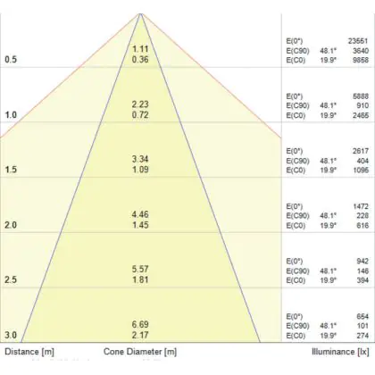 L'apertura del fascio luminoso indica l'angolo del fascio di luce proveniente da una lampada o lampadina. Si misura in gradi (D) e più piccolo è l'angolo, più piccola è l'apertura del fascio di luce.
