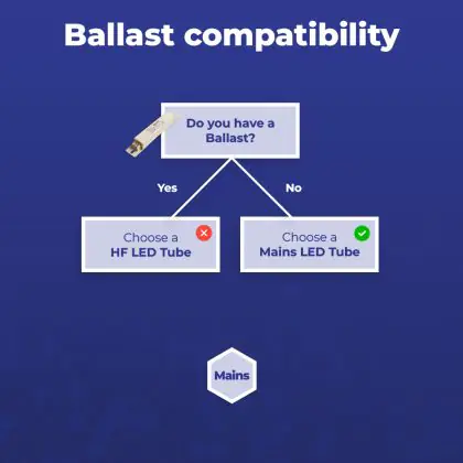 Quando installi un tubo LED è importante controllare il wattaggio e la lunghezza del tubo fluorescente da sostituire. Questo T5 LED da 26W è il sostituto per un tubo fluorescente di 49W e con lunghezza di 1449mm. La tecnologia LED fa risparmiare fino al 50% sui costi dell’energia comparato con un T5 fluorescente.