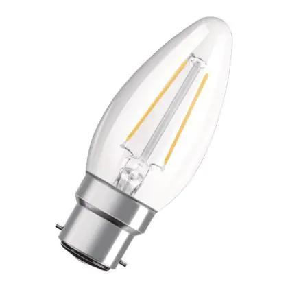 Questa lampadina LED B22d Osram Parathom Retrofit Classic a forma di candela è l'alternativa LED perfetta alle vecchie lampadine ad incandescenza da 25 Watt con attacco B22d.