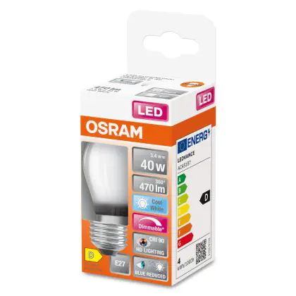 La Osram LED Superstar E27 Sferica Filamento Ghiaccio 3.4W 470lm - 940 Bianco Freddo | Miglior Resa Cromatica - Dimmerabile - Sostitutiva 40W è la perfetta sostituzione per la tua lampada convenzionale 40W con attacco E27 grazie alla sua tecnologia LED. Passare a LED ti offrirà tanti vantaggi!