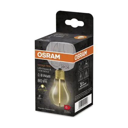 La Osram Vintage 1906 LED E27 Special Filamento Chiara 1.8W 80lm - 827 Bianco Molto Caldo | Sostitutiva 15W è la perfetta sostituzione per la tua lampada convenzionale 15W con attacco E27 grazie alla sua tecnologia LED. Passare a LED ti offrirà tanti vantaggi!
