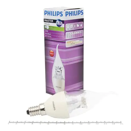Descrizione Philips MASTER LED Candela E14 Piegato-tip Corona Chiara 6W 470lm - 822-827 Dim To Warm | Dimmerabile - Sostitutiva 60W