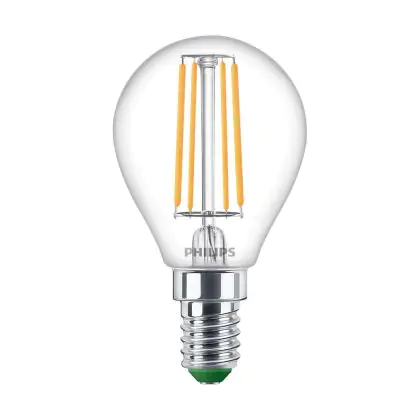 La lampada Philips Master Ultra Efficient LED E14 Pera Filamento Chiara 2.3W 485lm - 827 Bianco Molto Caldo | Sostitutiva 40W è il sostituto perfetto per le tue vecchie lampade 40W con attacco a vite piccolo E14 grazie alla sua tecnologia LED. Passare a LED ti offrirà molti vantaggi!