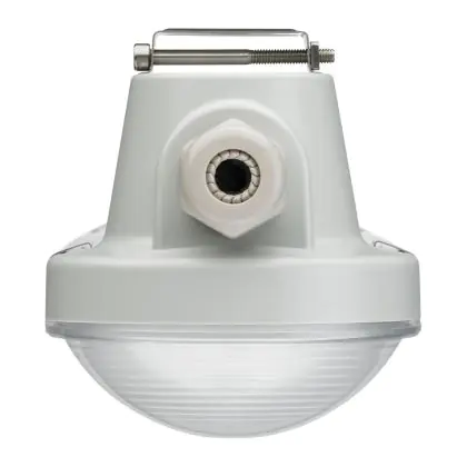 Questo apparecchio può essere usato sia in spazi interni che in spazi esterni, poiché ha indice di protezione contro l'ingresso di acqua e polvere IP65. In generale, un apparecchio con IP44 è resistente a schizzi di acqua e umidità, e può quindi essere installato in spazi esterni molto umidi o esterni riparati, come sono una tettoia. Un apparecchio che invece verrà esposto a intensi getti di acqua deve avere almeno IP54. Questa lampada ha anche un indice di resistenza a urti e impatti di IK08 - 5 Joule.