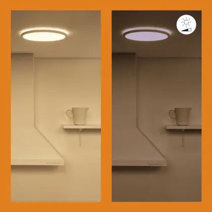 Per scegliere un apparecchio di illuminazione bisogna anche considerare dove verrà installato. Per esempio la luce di 2700 Kelvin (bianco molto caldo) e 3000 Kelvin (bianco caldo) creano un’atmosfera rilassante e piacevole. Questa tonalità è quindi molto adatta ad ambienti accoglienti o a zone generiche come corridoi, ascensori, disimpegni o pianerottoli. Una luce di 4000 Kelvin (bianco freddo), invece,è più luminosa e fresca ed è quindi adatta come illuminazione funzionale in uffici, aziende, scuole e biblioteche. La temperatura di colore di questa plafoniera LED è 2700K - 6500K bianco regolabile.
